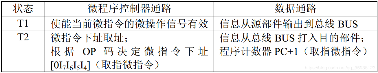 此外,由于微程序控制器和数据通路相互独立,两者操作可以并行执行,微程序CPU的微指令周期只需要T1和T2两个状态,微指令状态机循环输出节拍序列{T1,T2},使状态顺序转移:T1→T2→T1→…