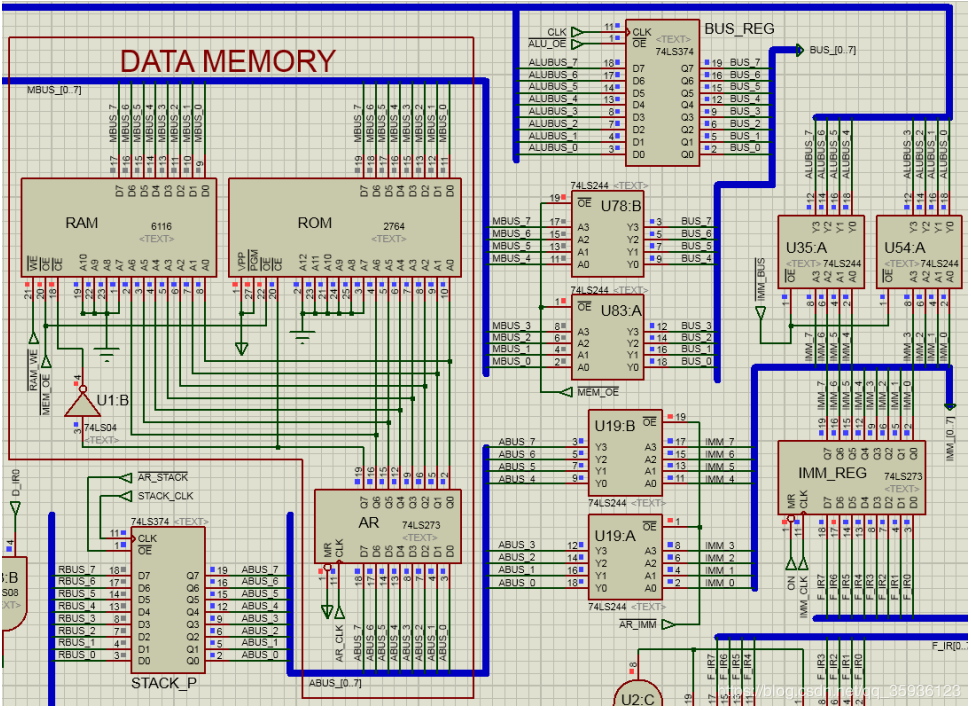 ● 若是LAD/POP指令(#MEM_OE=0):则ROM→BUS,即数据存储器输出。